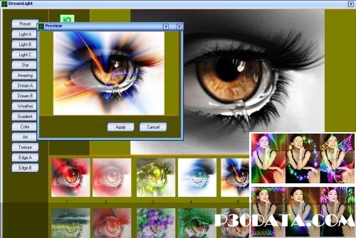 DreamLight Photo Editor، شامل 15 فیلتر مختلف می باشد، و برای هر فیلتر دارای بیش از 10 نوع متنوع افکت است و بر روی یک تصویر امکان افزودن همزمان چندین فیلتر وجود دارد. از جمله افکت های افزوده شده به این برنامه می توان به موارد زیر اشاره کرد: فیلترهای نور متنوع، ستاره و فیلترهای ویژه ای که تصاویر را بسیار تاثیرگذارتر می سازند. علاوه بر فیلترها، امکان افزودن افکت هایی از آب و هوا، گرادیان، بافت، انتخاب زوایا و بسیاری دیگر نیز وجود دارد. در مجموع DreamLight Photo Editor شامل 150 نوع متنوع افکت می باشد که به شما کمک می کند تا هزاران تصویر زیبای فراموش نشدنی را ایجاد نمایید. با استفاده از DreamLight Photo Editor ، تنها با کلیک کردن ساده می تواید افکت های رویایی زیر را به تصاویرتان اضافه نمایید: فیلترهای از پیش تعریف شده، فیلترهای نور، فیلتر ستاره، فیلتر شگفت انگیز، فیلتر رویایی، فیلتر آب و هوا، فیلتر گرادیان، فیلتر رنگ و بافت و زاویه و ... همانطور که قبلاَ اشاره شد، این نرم افزار شامل 15 فیلتر و هر فیلتر دارای 10 نوع افکت خاص می باشد. لذا در مجموع 150 نوع افکت خاص برای انتخاب وجود دارد. With DreamLight Photo Editor, just by simple mouse clicking, you can add dream effects: • Preset filter (10 effects) • Pencil drawing filter (10 effects) • Light filter (10 effects) • Amazing filter (10 effects) • Dream filter (10 effects) • Weather filter (10 effects) • Star filter (10 effects) • Art filter (8 effects) • Gradient filter (10 effects) • Color filter (10 effects) • Texture filter (10 effects) • Edge filter (20 effects) Download http://hotfile.com/dl/36341178/8284834/DreamLight_Photo_Editor_3.84.rar.htmlطبقه بندی: ویرایشگر تصویر